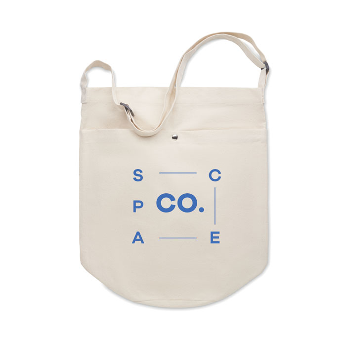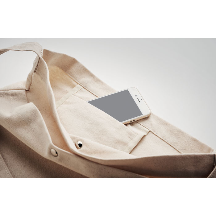 Vászontáska hosszú, állítható vállpánttal és nagyméretű, patenttal záródó elülső zsebbel. Belső zsebbel. 270 g vastag anyag.  38X24X42CM