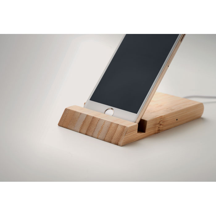10 W-os bambusz vezeték nélküli töltő telefonállvány funkcióval. Teljesítmény: DC 9V/1,1A, amely alkalmas gyorstöltésre. Kompatibilis a legújabb Androidokkal, iPhone® 8 és újabb készülékekkel. A bambusz természetes anyag, színében, mintázatában és méretében esetenként eltérő lehet. 13X8X1,7 CM